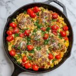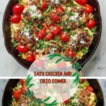 This flavorful Chicken and Orzo recipe is a perfect 30-minute dinner idea combining tender chicken thighs, preserved lemon, cherry tomatoes, and aromatic herbs. Quick and easy to prepare, this skillet dish simmers all the components together, delivering a comforting and savory meal topped with Parmesan and fresh parsley.