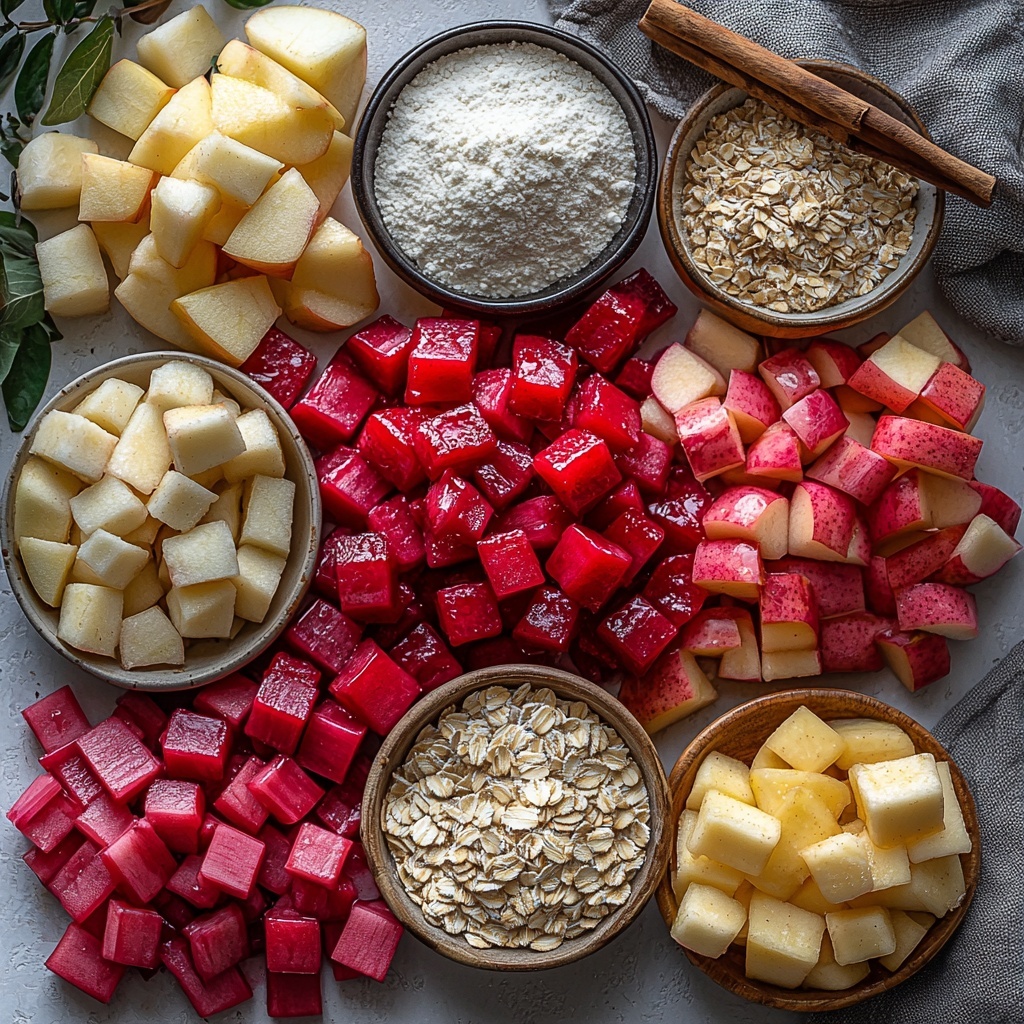 This Apple Rhubarb Crisp Recipe uses straightforward ingredients that you probably already have or can easily find. Each component plays a vital role, from the tangy rhubarb and sweet apples to the crunchy oat topping and the warm spice of cinnamon that brings everything together perfectly.