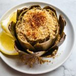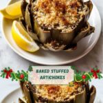 This Baked Stuffed Artichokes recipe features tender artichokes stuffed with a flavorful mixture of panko bread crumbs, parmesan cheese, garlic, and fresh parsley, then baked to golden perfection. A delicious and elegant appetizer or side dish, it combines the earthy taste of artichokes with zesty lemon and savory seasonings for a crowd-pleasing treat that’s perfect for any occasion.