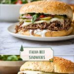 These Best Italian Beef Sandwiches are a flavorful and hearty way to enjoy leftover rib roast. Combining tender, shredded beef simmered with Italian seasonings, pepperoncini, roasted red peppers, and onions, these sandwiches are topped with melted provolone and a hint of horseradish sauce for an irresistible classic Italian-American meal.