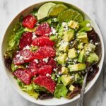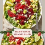 A vibrant and refreshing Blood Orange Salad featuring a zesty lime-honey dressing, tender baby greens, sweet and tangy blood oranges, creamy avocado, crisp shallots, and crumbly feta cheese. This salad is a perfect balance of flavors and textures, ideal for a light lunch or a side dish.