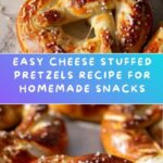 Make your Cheese-Stuffed Pretzels Recipe party-ready by arranging them on a wooden board with bowls of assorted dips and pickles. You could even cut them into smaller bite-sized pieces for sharing at a gathering or add a sprinkle of smoked paprika for a smoky finish that’ll wow your guests.