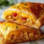 These Cheesy Chicken Taco Pockets are a delicious and easy-to-make snack or meal, featuring a flavorful blend of seasoned chicken, creamy cheeses, and taco spices wrapped in flaky crescent roll dough. Perfectly baked until golden and served with fresh cilantro and optional dips, they make a crowd-pleasing dish that’s ready in just 25 minutes.