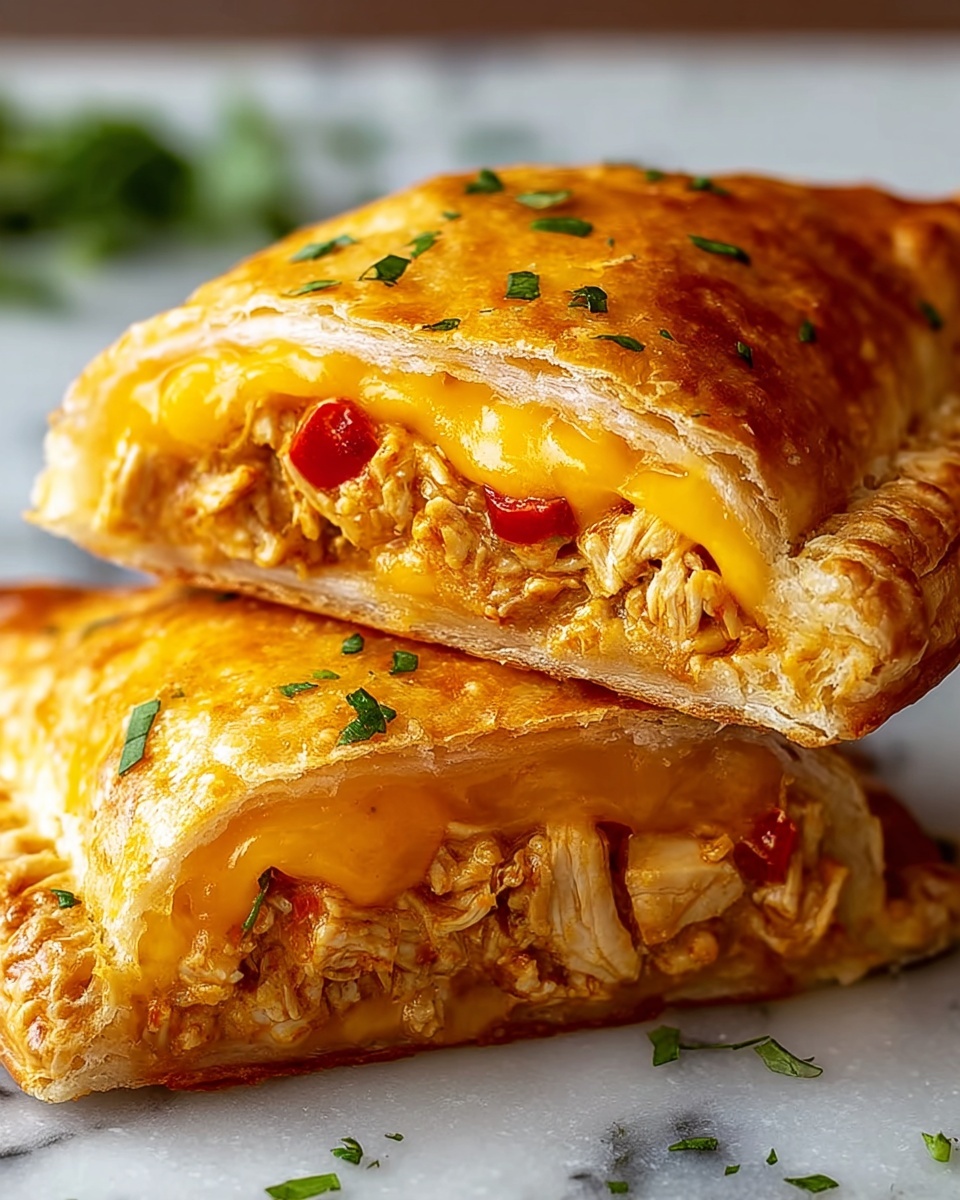 Once baked, let your Cheesy Chicken Taco Pockets cool for a few minutes. This resting time helps the filling set slightly so it won’t spill out when you dig in. Finish them with a sprinkle of fresh chopped cilantro to add that fresh, herbaceous note that brightens every bite.