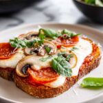 Once the bread has that slight golden edge, take it out and flip each slice over. Spread a generous tablespoon of pizza sauce on each one—it’s the flavor foundation that kicks this toast from simple to sensational. Next, sprinkle about 3 tablespoons of shredded mozzarella cheese, then layer on your pepperoni slices, a handful of button mushroom slices, along with diced green bell pepper and red onion. Top everything off with an additional 2 tablespoons of mozzarella, ensuring gooey, golden cheesy goodness all over.