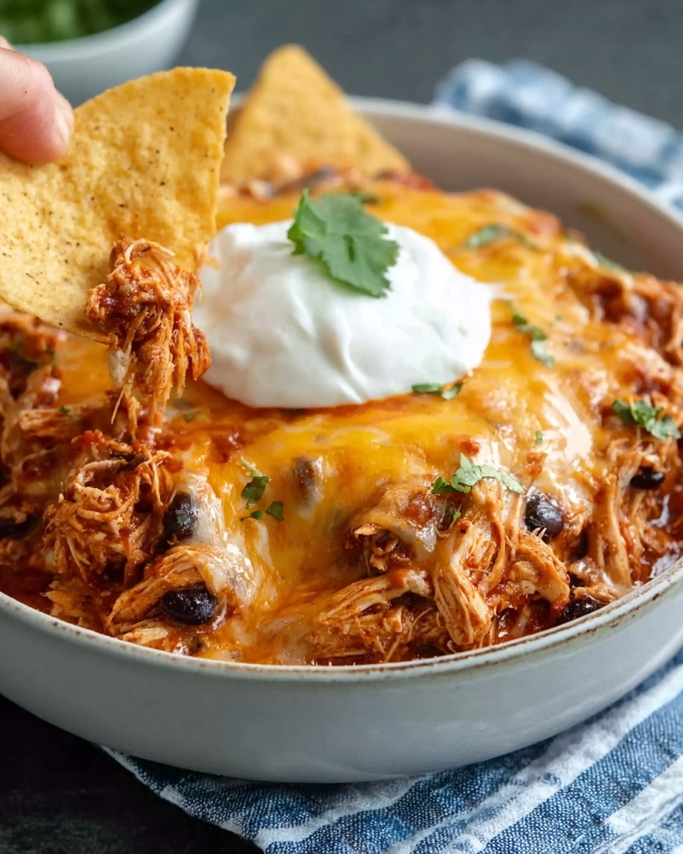 How to Serve Cheesy Slow Cooker Chicken Enchilada Bake Recipe
