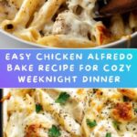 A creamy and comforting Chicken Alfredo Bake featuring tender penne pasta, succulent cooked chicken, and a rich homemade Alfredo sauce baked to bubbly perfection with mozzarella cheese and a golden top, perfect for a family dinner or special occasion.