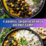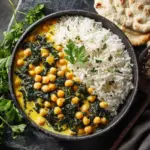 A warm, flavorful Chickpea Spinach Coconut Curry that combines creamy coconut milk with vibrant spices, fresh spinach, and protein-rich chickpeas. This vegan and gluten-free dish is perfect for a comforting, wholesome main course that’s quick and easy to prepare on the stovetop.