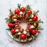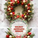 This festive Christmas Antipasto Wreath is a vibrant and delicious appetizer perfect for holiday gatherings. Skewers loaded with juicy cherry tomatoes, briny Greek olives, fresh mozzarella balls, and savory salami are artistically arranged in a wreath shape, accented with fragrant rosemary and drizzled with a tangy balsamic and olive oil dressing. It’s an easy no-cook recipe that offers a beautiful presentation and a delightful mix of flavors.