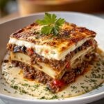 Once cooled, cover your Classic Greek Eggplant Moussaka Recipe tightly and store it in the refrigerator for up to three days. The flavors deepen overnight, making leftovers often even better the next day.