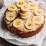 For an eye-catching dessert, cut the banana cake into squares and stack them with layers of frosting and banana slices between for a mini cake tower. You can also turn slices into delightful cake sandwiches with a smear of peanut butter or Nutella for a fun twist.