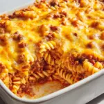 - Assemble Casserole: Transfer the pasta and chili mixture into a greased 9×13-inch baking dish. Sprinkle the shredded cheddar cheese evenly over the top.