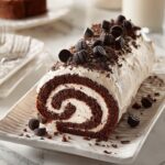 This Cookies and Cream Cake Roll is a delightful dessert featuring a light and fluffy sponge cake rolled with a rich, creamy filling studded with crushed chocolate sandwich cookies. Perfect for special occasions or a decadent treat, it combines the classic flavors of vanilla and chocolate in an elegant presentation.