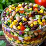 In your largest mixing bowl, gently toss together the black beans, black-eyed peas, corn, cherry tomatoes, red onion, red and orange bell peppers, diced avocado, and freshly chopped cilantro. This colorful combination is what really delivers on the “zesty and colorful” promise of the Cowboy Caviar Recipe: Zesty, Colorful, and Ready in Minutes Recipe.