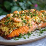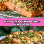This Crab & Shrimp Stuffed Salmon recipe features tender salmon fillets filled with a savory mixture of cooked shrimp, lump crab meat, and creamy seasonings. Baked to perfection, this dish combines the rich flavors of seafood with a hint of lemon and Old Bay seasoning, making it a perfect elegant yet easy-to-make main course for seafood lovers.