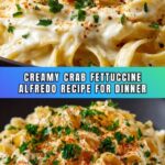This Crab Fettuccine Alfredo recipe combines tender fettuccine pasta with a rich, creamy Parmesan sauce and succulent lump crab meat. Enhanced with garlic, lemon juice, and fresh parsley, it makes for a luxurious yet easy seafood pasta dish perfect for a comforting main course.