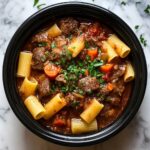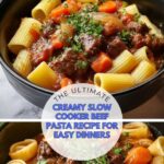 A rich and comforting creamy slow cooker beef pasta recipe that combines tender beef stew meat with a flavorful tomato and cream sauce, perfectly paired with al dente pasta for an easy and satisfying meal.