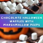 Enjoy a spooky twist on breakfast with these Dark Chocolate Marshmallow Halloween Waffles, featuring rich cocoa-infused batter studded with semi-sweet chocolate chunks and topped with festive Halloween-themed marshmallow Peeps. Perfect for a fun and indulgent fall morning treat.