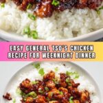 A quick and easy recipe for General Tso’s Chicken featuring crispy chicken thighs coated in a sweet and tangy sauce, perfect for a comforting weeknight dinner served over white rice.