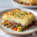 This Easy Shepherd’s Pie recipe features a savory ground lamb or beef filling cooked with onions, garlic, carrots, and herbs, topped with creamy mashed potatoes and baked until golden. A comforting and classic dish perfect for an effortless weeknight dinner.