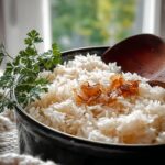 To reheat, sprinkle a little water over the rice to restore moisture, then warm it gently in a skillet or microwave until heated through. Fluff with a fork again to revive its light and fluffy texture before serving.