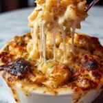 This decadent French Onion Soup Mac & Cheese blends the rich, caramelized flavors of traditional French onion soup with creamy, cheesy macaroni. Slowly caramelized onions develop deep sweetness, combined with a savory beef broth cheese sauce featuring Gruyère, sharp cheddar, and Parmesan. Perfect as a comforting meal, this dish delivers layers of savory goodness with an optional crisp, cheesy baguette topping.