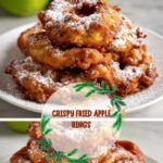 Crispy, golden fried apple rings coated in a spiced batter and dusted with powdered sugar. These delightful apple treats are perfect as a warm dessert or snack, optionally served with caramel sauce or honey for added sweetness.