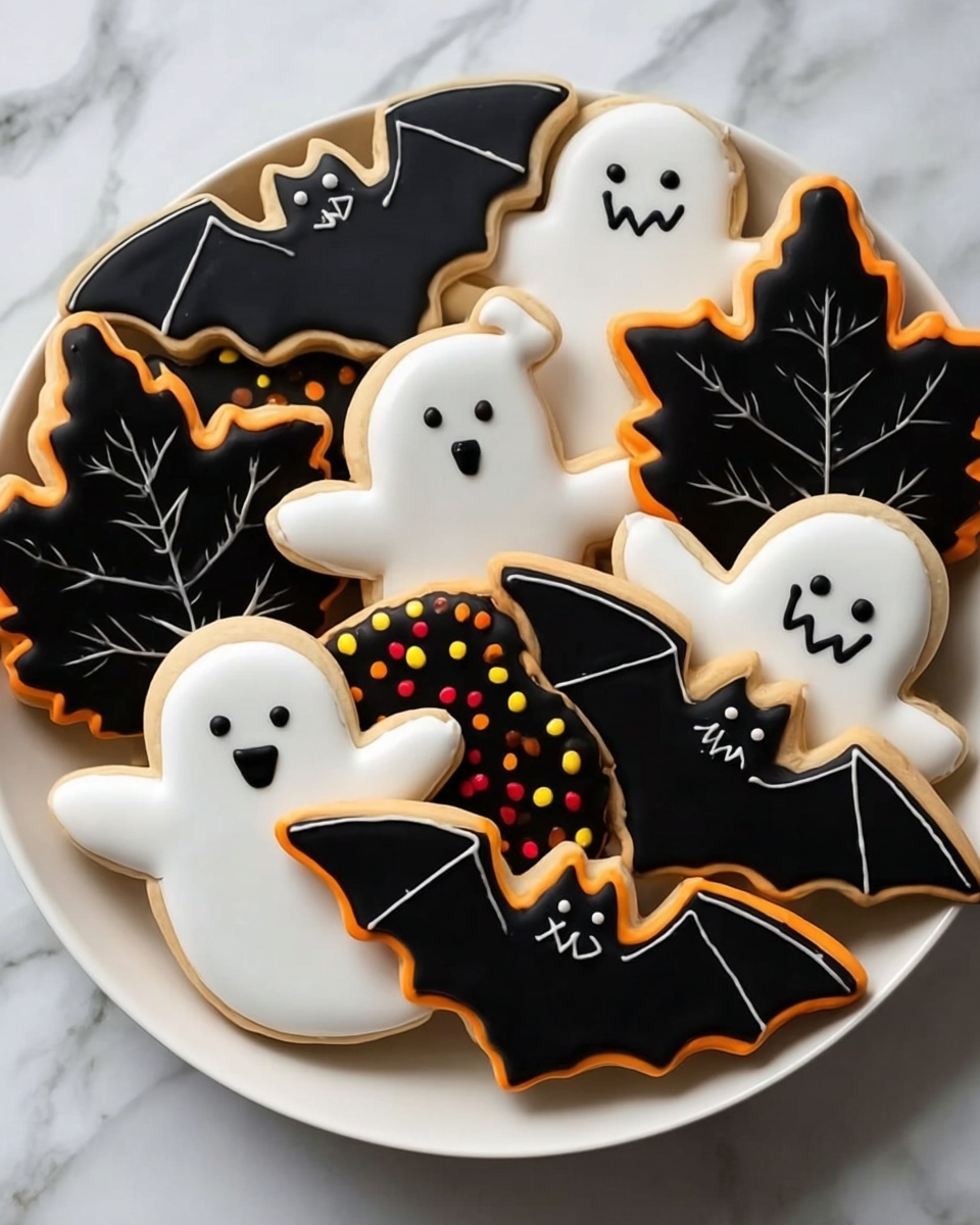 Halloween Royal Icing Cookies are festive, buttery sugar cookies decorated with smooth royal icing in vibrant Halloween colors. Perfect for spooky celebrations, these cookies use a classic butter cookie base and a silky royal icing flavored with vanilla and almond emulsions to create bright orange and black designs. Decorate with themed candy skulls and sprinkles for a fun, eye-catching treat that’s perfect for parties or gifting.