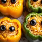 Arrange the stuffed peppers standing upright in a baking dish. Pop them into the oven and bake for 30 minutes. You’re aiming for melty cheese and tender peppers that still hold their spooky shape. The aroma at this point is irresistible, and the sight of those glowing pepper faces gets everyone excited to dig in!