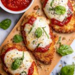 Remove the chicken from the oven and spoon a generous layer of marinara sauce over each piece. Top with thick slices of mozzarella, then return the chicken to the oven. Bake for an additional 5 minutes, then switch to broil for 3-4 minutes to melt and bubble the cheese perfectly—just keep an eye on it so it doesn’t burn.