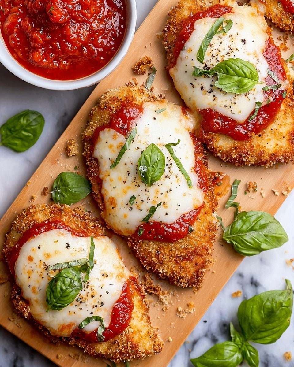 Try stacking the chicken breasts over a bed of garlic sautéed spinach for a nutrient-packed plate. Or turn the recipe into a chicken Parmesan sandwich by placing the baked chicken in a whole wheat hoagie roll with extra sauce and melted cheese. This adds a fun twist that’s great for casual lunches or picnics.