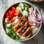 This Healthy Chicken Shawarma Bowl offers a flavorful and nutritious meal featuring oven-baked spiced chicken breast served over a bed of fluffy quinoa with fresh vegetables and a creamy tahini dressing. It’s a delicious, wholesome take on classic Middle Eastern flavors perfect for a satisfying lunch or dinner.