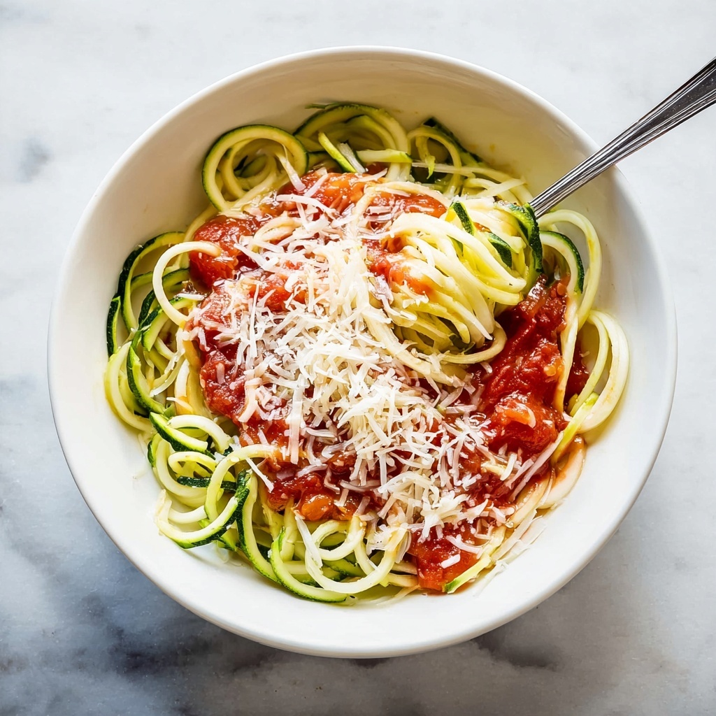 Plate the zucchini noodles, then ladle the vibrant marinara sauce generously on top. If you like, sprinkle with freshly chopped herbs or a dusting of Parmesan cheese to finish. This plating approach makes every bite a perfect balance of tender noodles and aromatic, savory sauce.