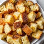 • Make sure the bread cubes are not overcrowded on the baking sheet to avoid steaming instead of baking.