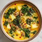 This Homemade Zuppa Toscana Soup is a hearty and comforting Italian-American classic, featuring savory sausage, crispy bacon, tender potatoes, and fresh kale in a creamy broth. Perfect for cozy dinners, this rich and flavorful soup is easy to make on the stovetop and offers a delicious copycat version of the popular Olive Garden favorite.