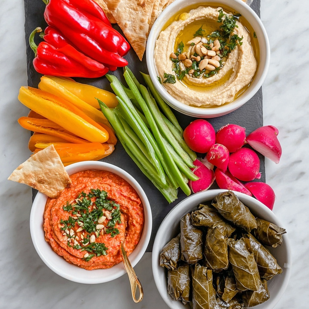 If you love fresh, flavorful food that’s as beautiful to look at as it is delicious to eat, you cannot go wrong with this Hummus Board with Fresh Vegetables, Grape Leaves, and Crispy Snacks Recipe. It’s simple to assemble, endlessly adaptable, and perfect for sharing with the people you love. So gather your ingredients, arrange your board, and enjoy the feast of colors and tastes that this recipe brings to your table. Trust me, you’ll want to make this your go-to for every occasion!