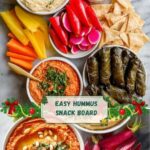 This Hummus Board with Fresh Vegetables, Grape Leaves, and Crispy Snacks Recipe is best served fresh so the veggies stay crisp and the pita chips remain crunchy. Bring it out at your next gathering and watch how quickly it disappears!