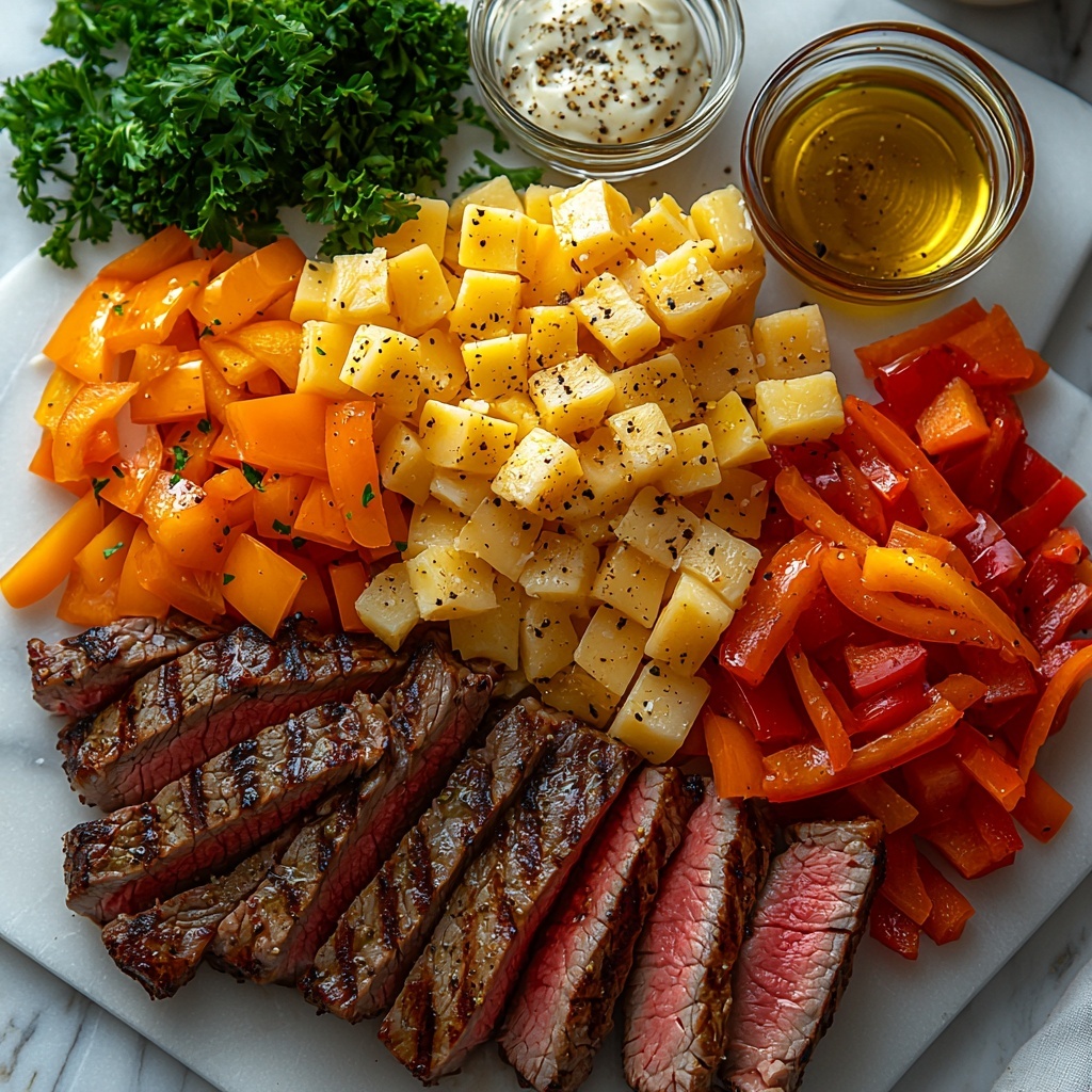 Yes! You can chop and sauté the vegetables ahead and even cook the steak, then assemble and melt the cheese just before serving to keep flavors fresh and textures perfect.