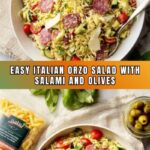 - Combine Salad Ingredients: In a large salad bowl, add the cooled orzo along with the prepared vegetables, salami, olives, Parmesan, and basil. Pour the dressing over the salad and toss thoroughly until everything is evenly coated. Adjust salt and pepper to taste.