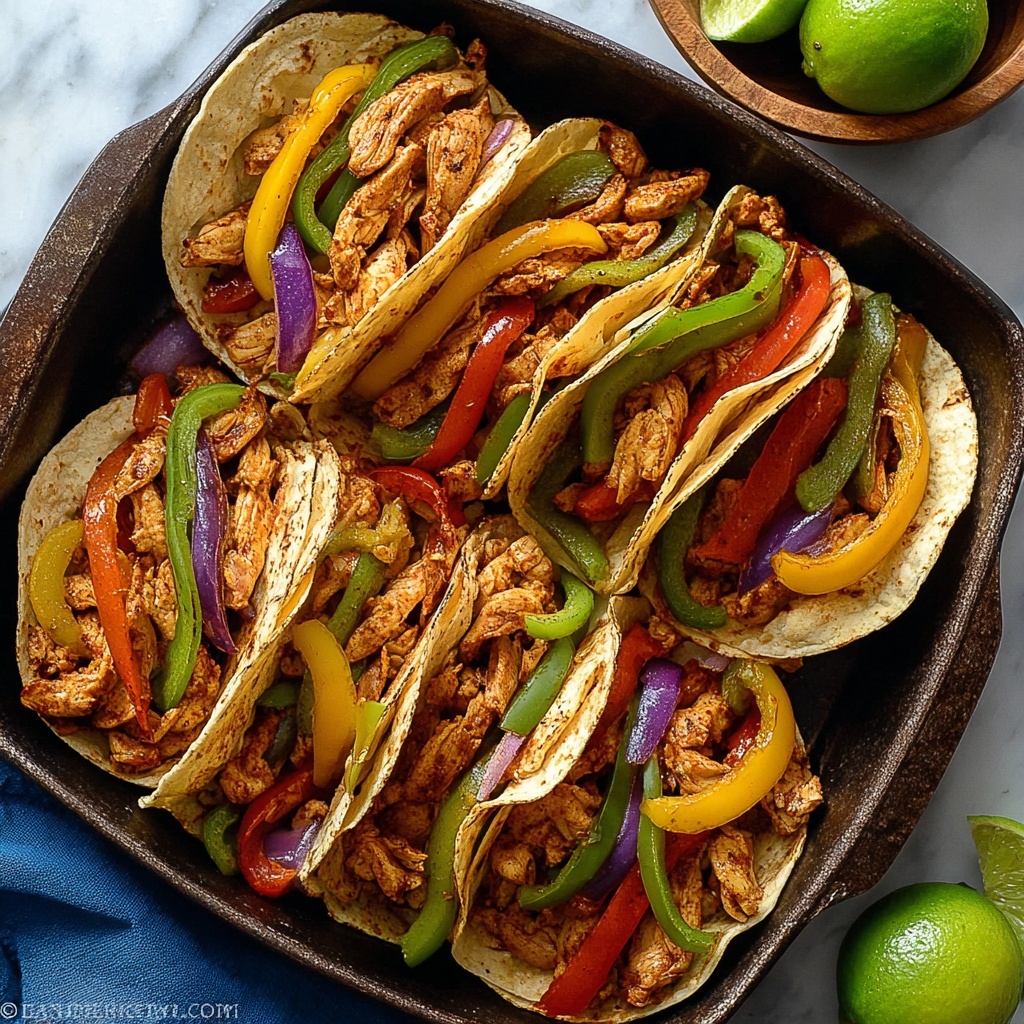 These Juicy Sheet-Pan Chicken Fajita Wraps are a simple and flavorful family dinner option, combining tender chicken breast strips with sautéed bell peppers and onions, all roasted together on a sheet pan for easy cleanup. Seasoned with vibrant fajita spices and served in warm tortillas, they make for a quick, satisfying meal that’s perfect for busy weeknights.