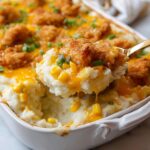 - Assemble Casserole: In a 9×13-inch casserole dish, layer the ingredients starting with the mashed potatoes on the bottom, followed by a layer of frozen corn, then place the cooked chicken tenders evenly on top. Sprinkle the shredded cheese over the chicken, and finally, pour the gravy evenly across the entire casserole to bring all flavors together.