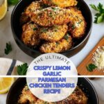 A flavorful and crispy Lemon Garlic Parmesan Chicken Tenders recipe featuring tender chicken coated in a cheesy breadcrumb mixture, drizzled with a zesty lemon garlic sauce, and baked to golden perfection. Perfect for a quick and satisfying dinner.