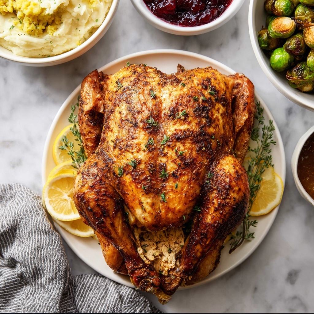 This Mayonnaise Roasted Turkey recipe delivers a moist and flavorful whole turkey using a unique mayonnaise rub infused with fresh herbs and garlic. Roasting at a low temperature ensures tender meat with a beautifully browned, crispy skin. Perfect for holiday dinners or any special occasion where you want a succulent, aromatic turkey that impresses your guests.