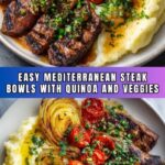 Mediterranean Steak Bowls are a flavorful and healthy meal featuring marinated flank steak served over a bed of quinoa or brown rice, topped with fresh vegetables, feta cheese, and a dollop of hummus. This quick and easy recipe combines vibrant Mediterranean flavors for a satisfying main course that’s perfect for meal prep or a nutritious dinner.