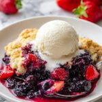 This Mixed Berry Cobbler is a delightful dessert that combines a medley of fresh berries with a sweet, tender biscuit topping, baked to golden perfection. Bursting with the natural flavors of blueberries, raspberries, blackberries, and strawberries, it’s enhanced by a touch of lemon zest and vanilla. Perfect for summer gatherings or a cozy family treat, this cobbler offers a balance of tart fruit filling and a soft, buttery topping finished with a sprinkle of decorator’s sugar for added crunch.