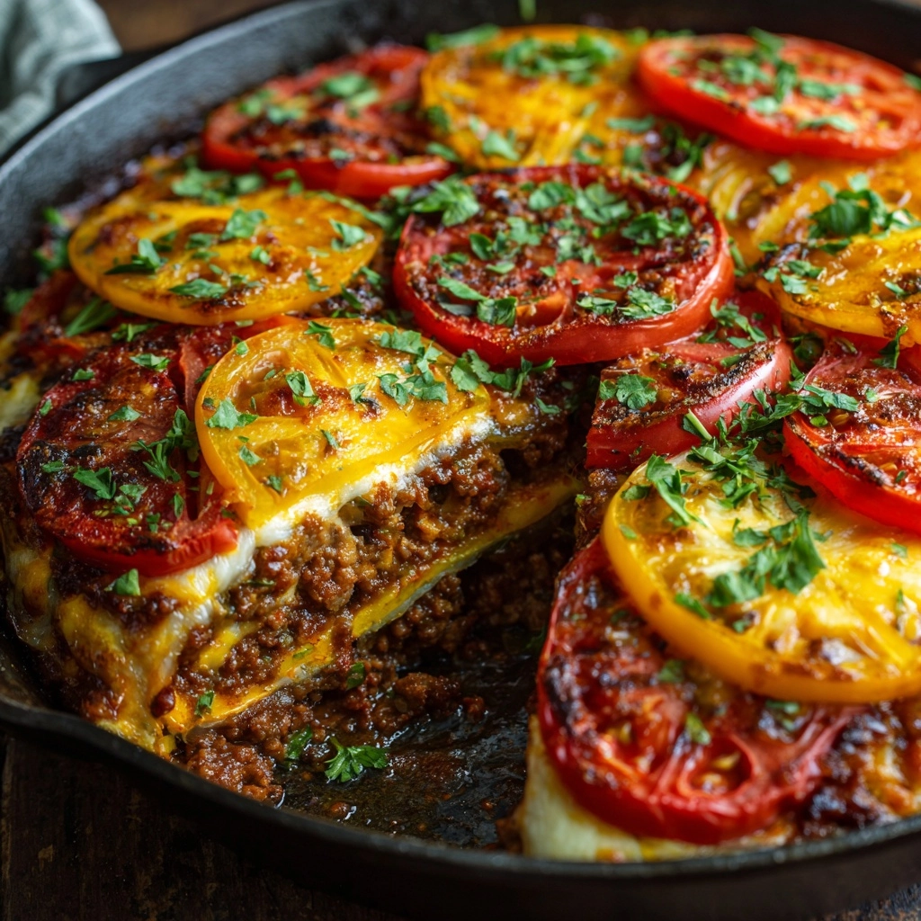 One-Pan Lebanese Kafta is a flavorful, easy-to-make Middle Eastern dish featuring seasoned ground beef or lamb patties baked with sliced potatoes, tomatoes, and bell peppers in a savory tomato sauce. This gluten-free main course combines aromatic spices like allspice and cinnamon with fresh herbs, delivering a wholesome and satisfying meal perfect for weeknight dinners or entertaining.