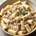 Take your Pasta alla Norcina Recipe a step further by plating it in individual shallow bowls for a cozy, inviting feel. Garnish each portion with a sprig of fresh parsley and a light dusting of Pecorino for an elegant, restaurant-style presentation that will impress your friends and family.
