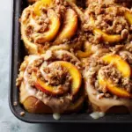 Delight in these Peach Cobbler Cinnamon Rolls, a perfect blend of tender homemade sweet rolls filled with a luscious peach cobbler-inspired filling and a classic cinnamon-sugar swirl. Soft, flaky dough layered with warm cinnamon butter and juicy peach compote is baked to golden perfection, then topped with a smooth vanilla glaze. Ideal for a summer brunch or a comforting breakfast treat.