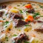 This Philly Cheese Steak Soup is a creamy, hearty take on the classic sandwich, featuring tender sirloin steak, sautéed vegetables, and melted provolone cheese in a rich beef broth. Perfect for a comforting meal, this soup combines savory flavors with a luscious texture that’s sure to satisfy any craving for a Philly cheesesteak in a bowl.