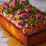 This Pistachio Cardamom Rose Loaf is a fragrant and elegant Middle Eastern-inspired dessert, combining the nutty crunch of pistachios with aromatic cardamom and delicate rose water. Perfect for an afternoon tea, this moist and flavorful loaf is adorned with a rose-infused glaze, edible rose petals, and fresh mint leaves, making it as beautiful as it is delicious.